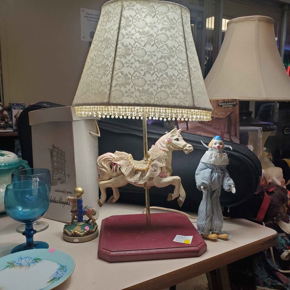 Cute, whimsical, vintage lamp. Works! Pickup at Brewed Relics 1315 24th Ave Sw, Building E (turn at LaNoy Tag Agency then go to the back of the lot, look for the “SHOP” sign), Norman, OK. Shipping available for additional charge. Email brewedrelics@gmail.com for more information.